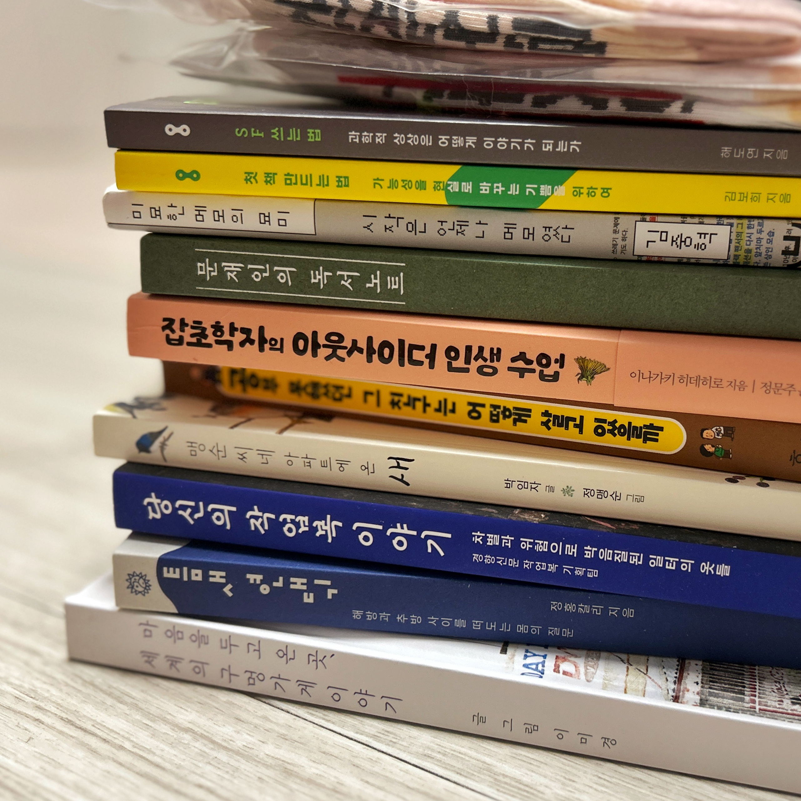 평산책방은 실제로도 한번 가보고픈 서점인데 양산까지 휠체어 끌고 가는게 쉬운 일은 아니어서 벼르고 있다. (친구들은 이미 갔다 왔더라 ㅠㅠ) 암튼 직접 가보지는 못하니까 이렇게라도 큐레이션을 보고싶어서 들렸다가 세권이나 삼...ㅎ 굿즈도...ㅎ