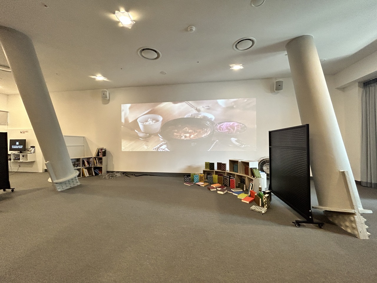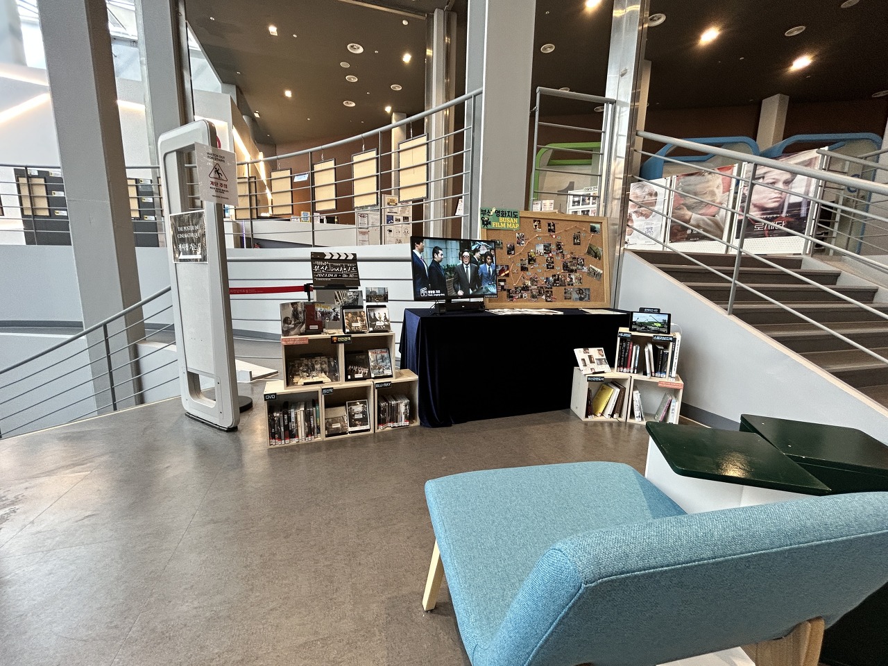 여기는 스트리밍 실이다. 한쪽 벽면에 영화가 상영되고 있었고, 다른 한쪽엔 카드 형식의 QR코드가 전시되어 있었다. 이 영화들은 다 뭘까?궁금해서 직원분께 여쭤보았더니, 부산국제영화제에 출품된 작품들이며, 26회까지의 영화를 볼 수 있다고 아주아주 친절하게 설명해주셨다! 원하는 작품 카드를 가져가서 개인 감상석 기계에 태그하면 볼 수 있는 시스템이었다. 한쪽에 깔끔하게 영화를 열람할 수 있게 열람석이 마련되어 있기는 했는데 휠체어 사용자한테는 좀 불편해보였다. 뭐 나처럼 의자에 옮겨 앉을 수 있는데 거리낌도 없고 불편함이 없는 사람은 괜찮겠지만... 휠체어에서 몸이 분리되는 게 불안하거나 몸을 지탱하기 힘든 사람이라면 아무래도 이용이 힘들겠지? 비장애인 이용자들에겐 넘넘 아늑한 공간일 것 같다. 암튼 대부분 다 인디영화 종류였고, 이름을 들어 본 작품들도 꽤 있어서, 내가 부산 시민이면 종종 와서 관람할 것 같다.