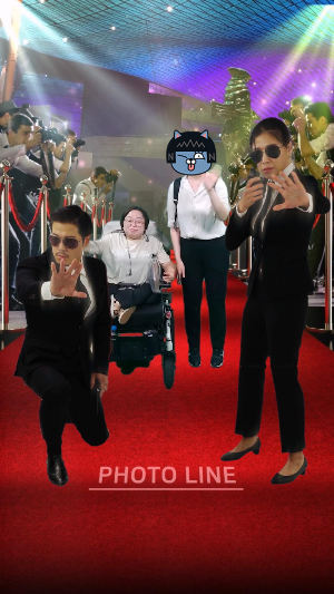 영화의 전당 라이브러리를 둘러보고 나오는데 1층에 초록 배경의 무언가가 있어서 봤더니 배경과 합성해주는 재미난 체험거리가 있었다. 한쪽은 턱이 있고, 한쪽은 턱이 없어서, 턱이 없는 쪽에 들어가서 친구랑 같이 포즈를 취했다. 거기 화면에서는 동영상으로 나왔는데 막상 내가 다운로드 하니 멈춘 캡쳐화면으로 떴다. (아쉽..)