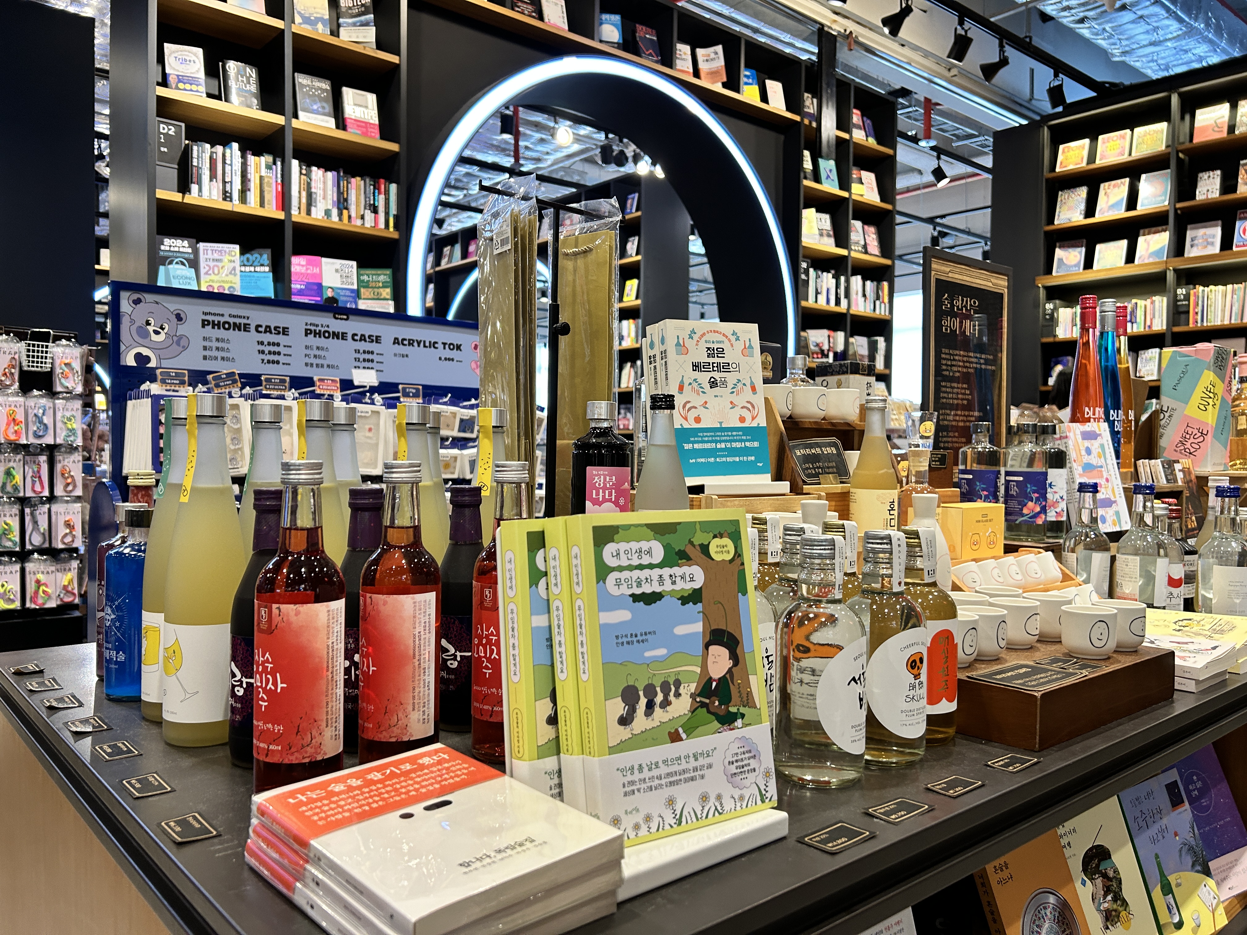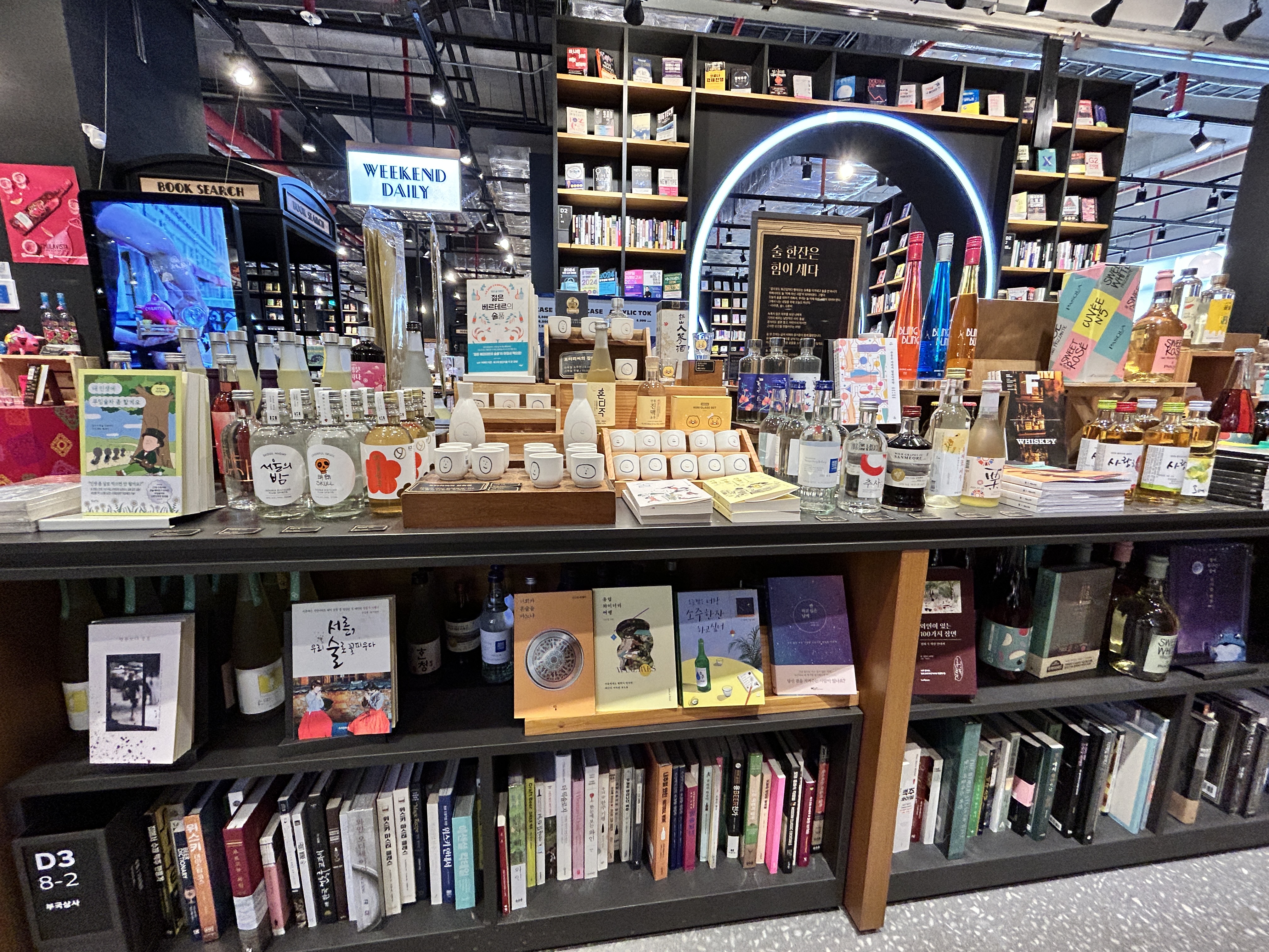 서점을 돌아보는데 입구부터 술병과 책이 같이 디스플레이된 것이 보였다. 어?... 츠타야? 오사카에서 봤던 츠타야서점이 딱 떠올랐다. 도톤보리 주변 츠타야가 딱 이런 느낌이었는데. 화장품 코너에 메이크업 관련 잡지나 책을 같이 팔았던 게 생각이 났던. 취향을 설계한다는 츠타야의 모토가 딱 생각나는 지점이었다. 참고 많이 해서 만든 느낌. (찾아보니 츠타야를 많이 참고 했다고 하네요... 지점이 전국에 몇개씩 있고 서울에 몇 군데는 만들었다가 폐점되기도 한듯)