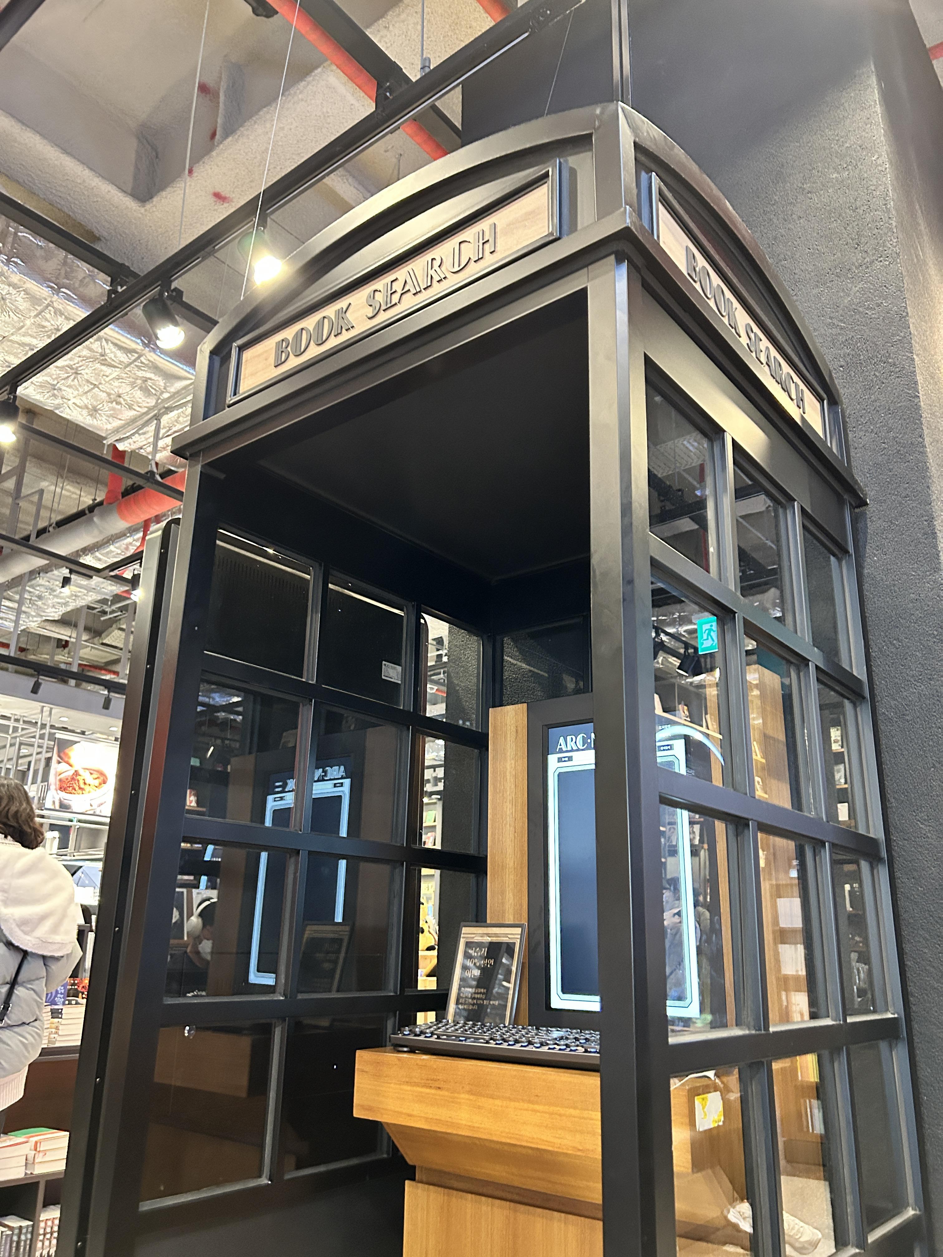 왼쪽 사진도 인상적이어서 찍었는데, 전화 부스 디자인을 활용해 도서검색대를 설치해두었다. 하지만 휠체어로 이용하기는 좀 어려워보여서, 필요한 책을 검색한다면 직원에게 도움을 요청해야 할 것 같았다. 암튼 인테리어적으로는 굉장히 독특하고 예뻤다.